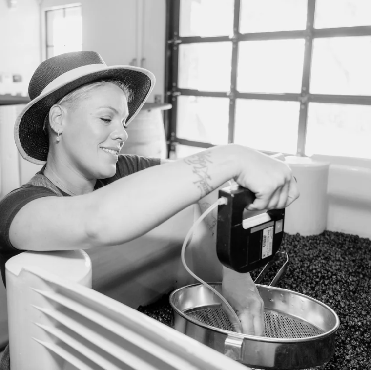 Alecia Moore Hart has another passion that is a lifestyle. She is an accomplished vintner, an active, hands-on winemaker. She has immersed herself in every step of the process from learning, planting, growing, harvesting, bottling and selling. Pink’s family estate vineyard produces limited quantities, ensuring a focus on quality over mass production. Demonstrating a long-term commitment to the craft of winemaking. In 2013, Alecia founded Two Wolves Wine in Santa Barbara County on their organic vineyard with passion and love. and recruited winemaker Alison Thomson to make wines together.